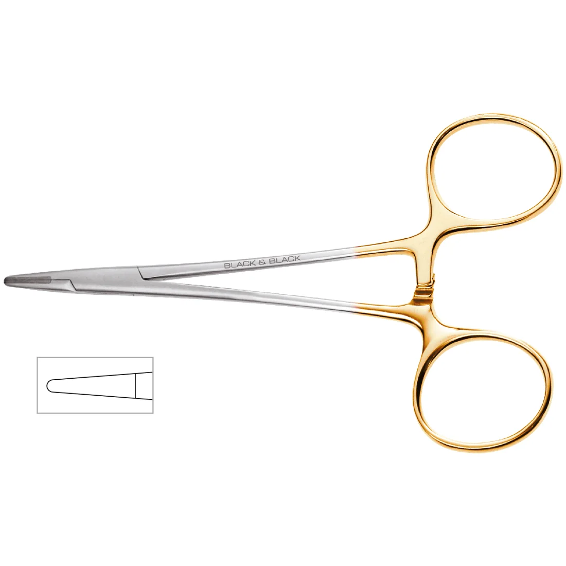 Делікатний популярний голкотримач для блефаропластики, ринопластики, підтяжки обличчя, підтяжки шиї та хірургії грудей. Тонкі кінчики легко охоплюють невеликі та делікатні ділянки. Вставки з карбіду вольфраму для надійного захоплення голок, нитки та тканини. Хвостовики точно збалансовані для комфорту та контролю. Пази кремальєри точно вирізані для легкого замикання/розблокування.