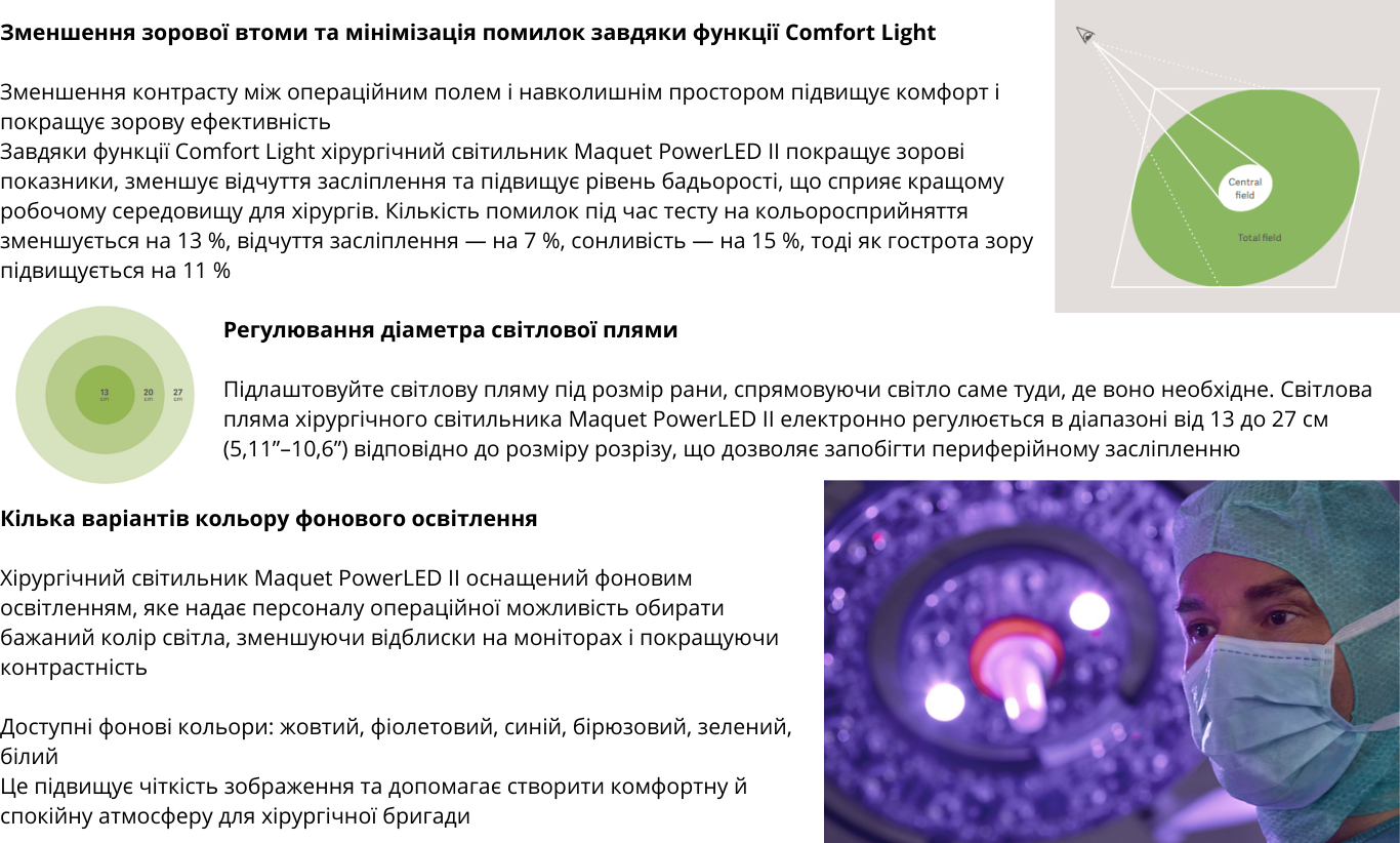 Оптичні характеристики хірургічних світильників Maquet PowerLED II 700 /500