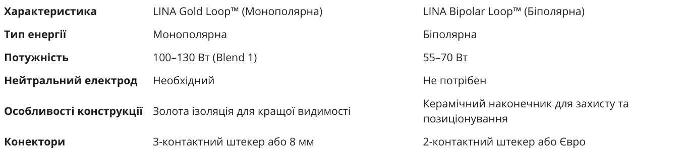 LINA Bipolar Loop™ — це вдосконалена система, яка використовує біполярну технологію для підвищення безпеки пацієнта.