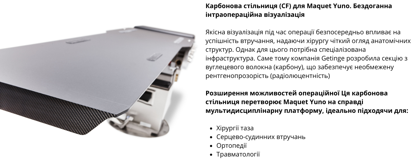 Універсальність: Зранку стіл може працювати як ортопедична система для ендопротезування, а вдень — як стіл для загальної хірургії. Це підвищує коефіцієнт використання обладнання.