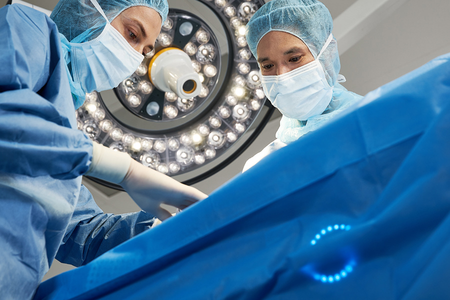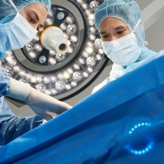 - Світлова індикація Feedback Lights: Система автоматично розпізнає та відображає орієнтацію стільниці. Кольорові підказки допомагають уникнути помилок у керуванні, їх чітко видно навіть крізь стерильне покриття