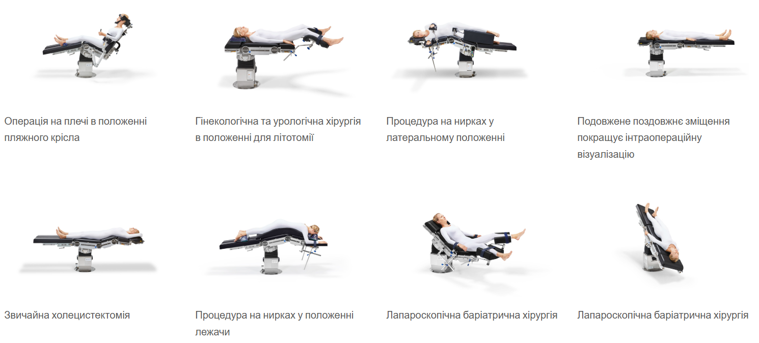 - Ергономіка: Конструкція забезпечує чудовий доступ до пацієнта та комфортні умови роботи для хірурга в різних положеннях.